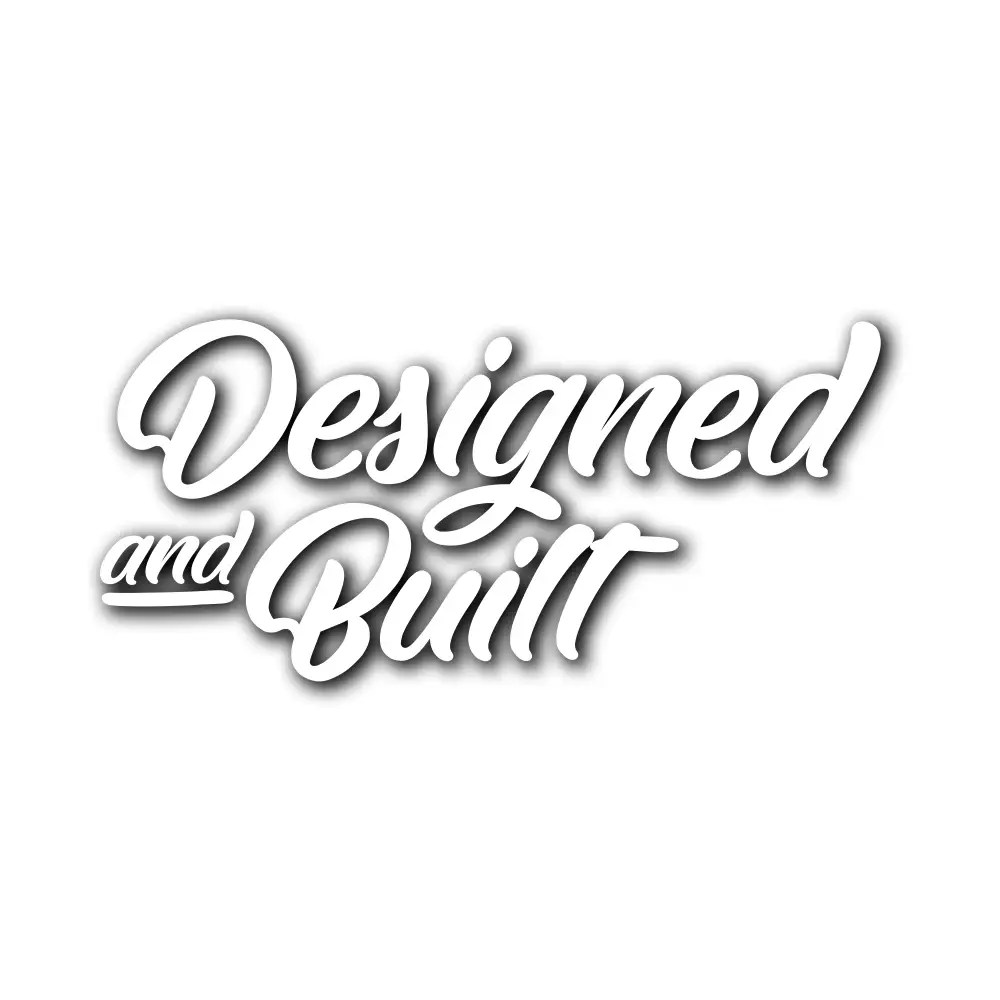 All Designed and Built stickers are produced on premium vinyl. Stickers are either vinyl cut or printed and made to last when stuck on your pride and joy. Thanks for supporting Designed and Built.